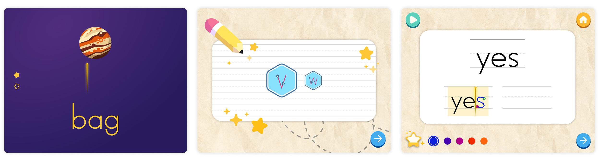The reward system encouraged consistent practice through milestones like unlocking new pen colors or playing interactive mini-games where students chase stars to spell letters.