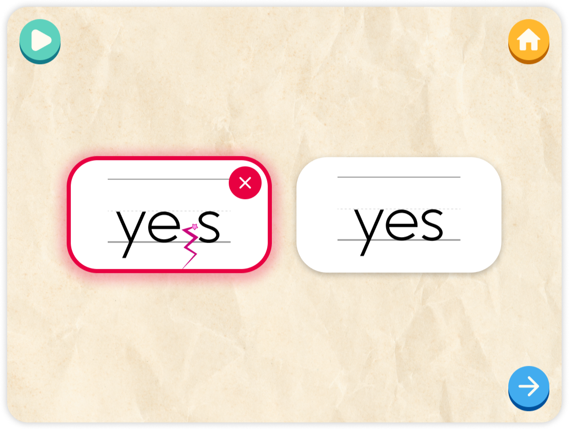 My team and I conducted observational studies at an elementary school in Brooklyn to test the app’s effectiveness. These revealed that the initial spacing activity needed refinement, leading to a new drag-and-drop exercise where students move letters to complete words with proper spacing.